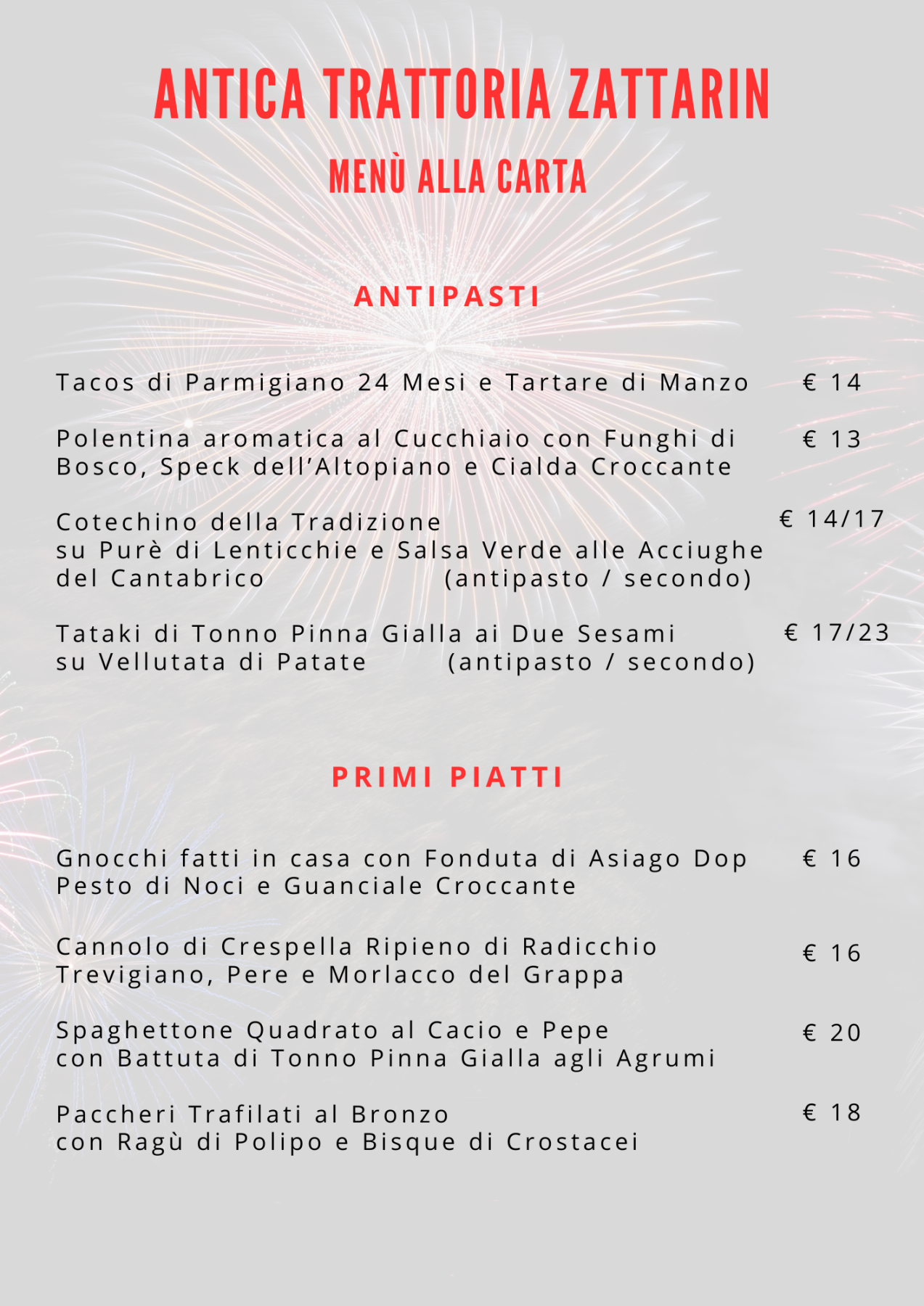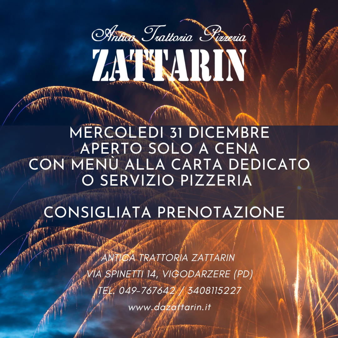 Informiamo la clientela che la serata del 31-12 sarà gestita con menu alla carta dedicato oppure con il servizio pizzeria.Â