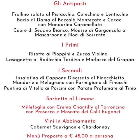 Ecco il nostro menù alla carta per la cena di Venerdi 31 Dicembre.